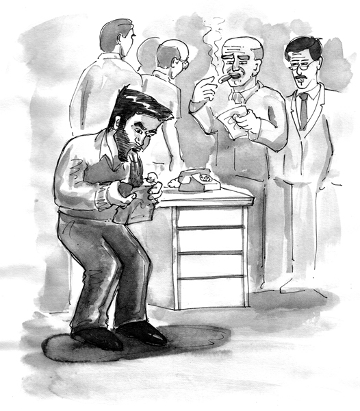 | "This was the most acute bout of existentialist revulsion yet... Bending low he thrust his muzzle into the nose bag and heaved twice to the accompaniment of a drawn out groan." |